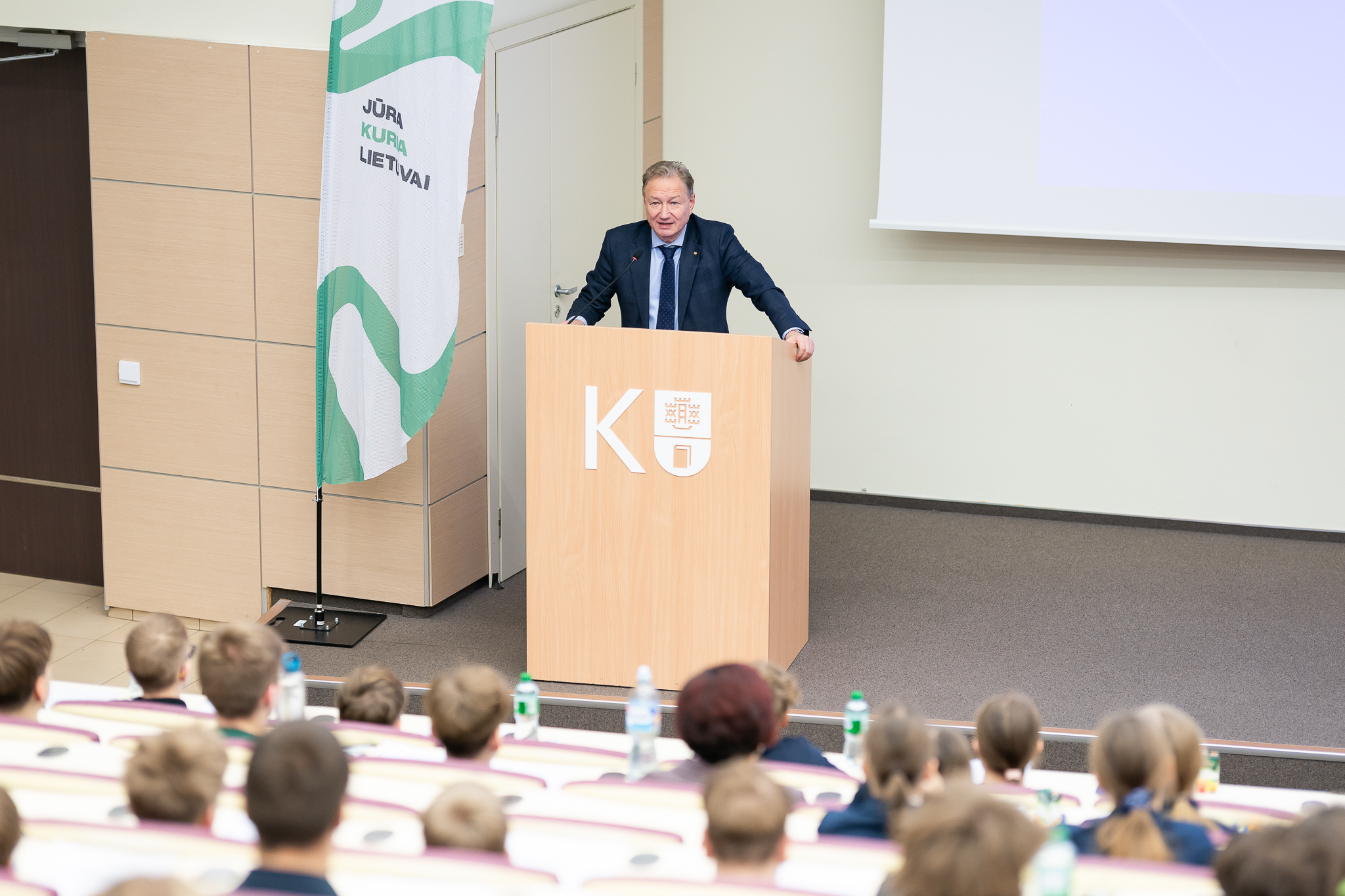 Olimpiadoje susirinkusius gabius mokinius sveikino KU rektorius prof. dr. Artūras Razbadauskas, KU Mokslo ir inovacijų prorektorė doc. dr. Laura Šaltytė-Vaisiauskė, KU Jūros technologijų ir gamtos mokslų fakulteto dekanas prof. dr. Viktoras Senčila.