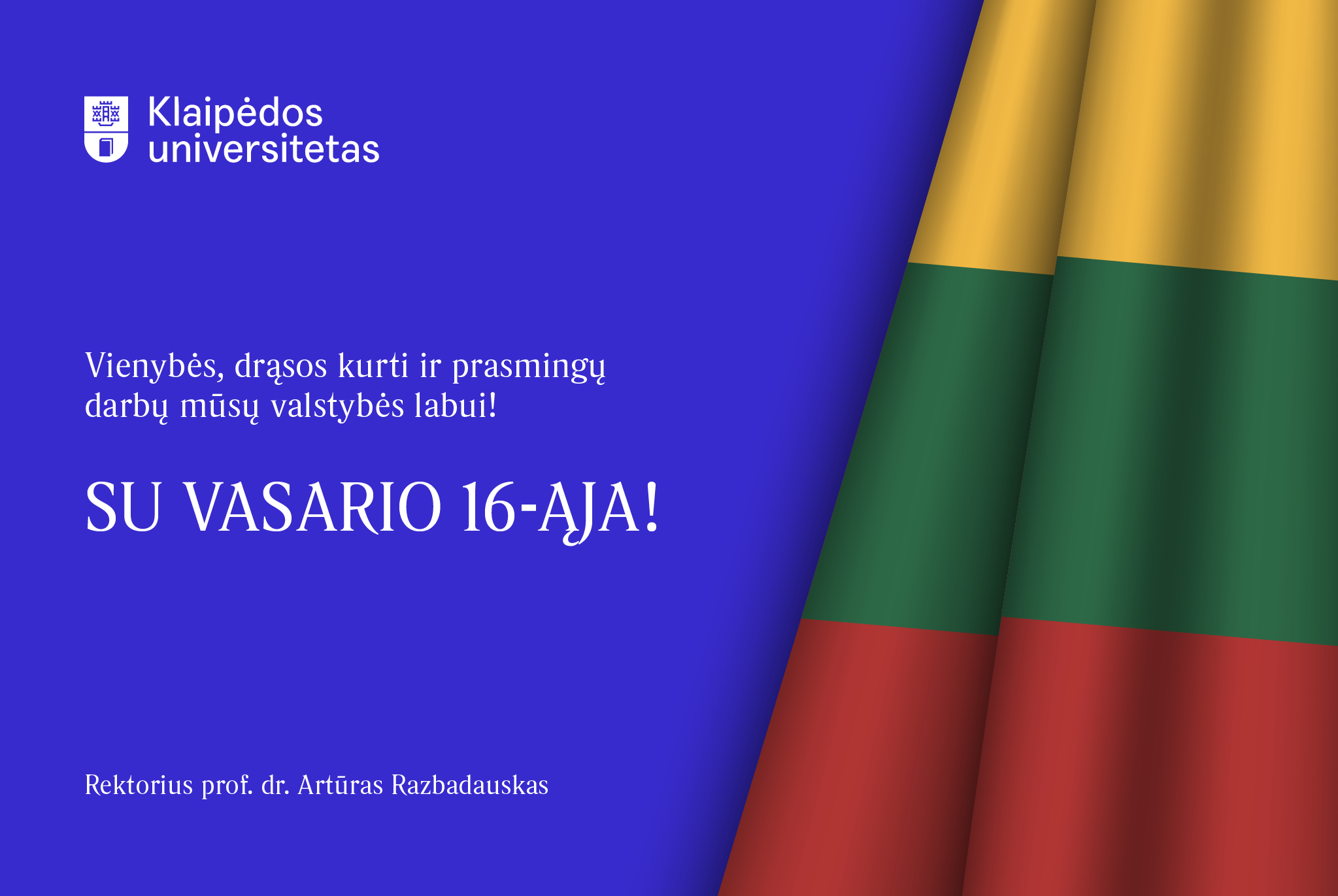 KU rektoriaus prof. dr. Artūro Razbadausko sveikinimas Vasario 16-osios proga